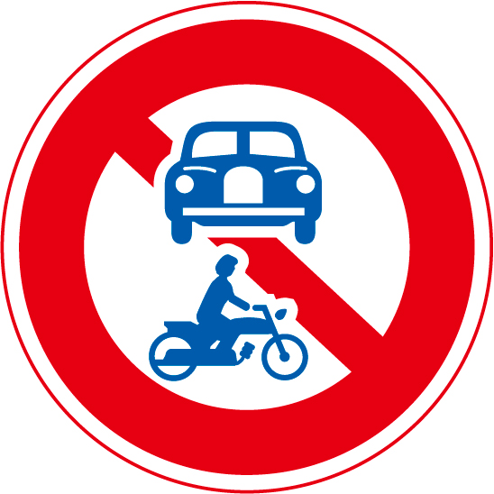 二輪の自動車原動機付き自転車通行止め No motor cycle |