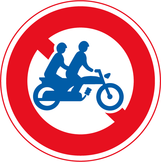 大型自動二輪車及び普通自動二輪車の二人乗り通行禁止通行止め No tandem |
